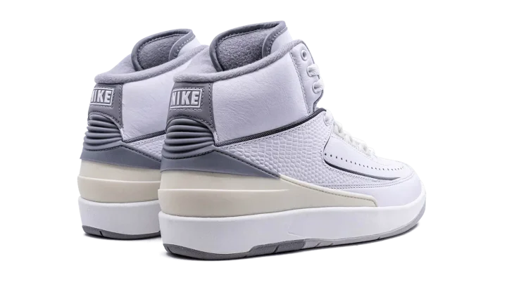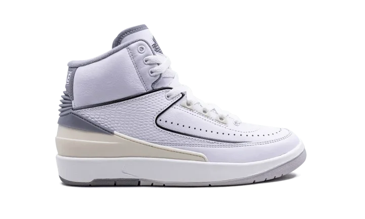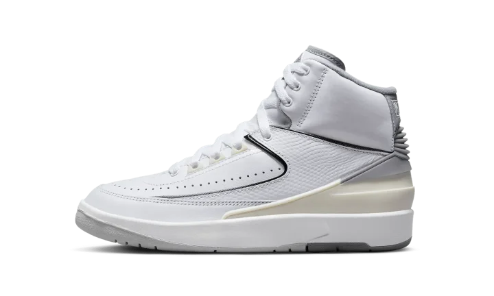 The Air Jordan 2 GS "Cement Grey" is the youth sizing of Michael Jordan's second signature shoe in a colorway with a neutral look. The Jordan 2 "Cement Grey" is a versatile colorway of the retro basketball shoe that features an easy-to-style white-and-grey color block. More specifically, the shoe has a white leather upper with a textured white leather mid-panel overlay. A Cement Grey heel counter fades to Sail and contrasts the upper's mostly white appearance. Classic "Jordan" branding appears on the back of the shoe while a Cement Grey "Wings" logo is found on the tongue. Release date: May 6, 2023