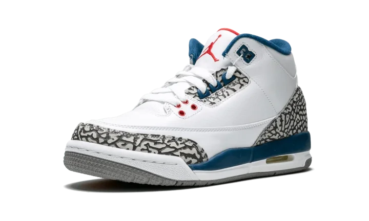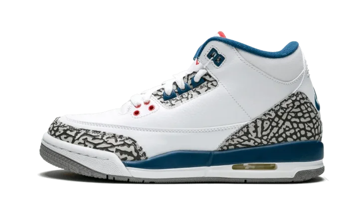 The Air Jordan 3 "True Blue" BG is the boys' version of the 2016 release of the classic original colorway. The children's "True Blue" Jordan 3 replicated the men's version exactly, featuring a full-grain white leather upper with blue and red accents alongside the iconic elephant print paneling. The boys' Air Jordan 3 "True Blue" BG features the original "Nike Air" branding on each heel to complete the authentic look of the model that first released in 1988.