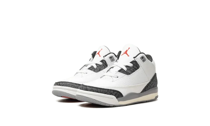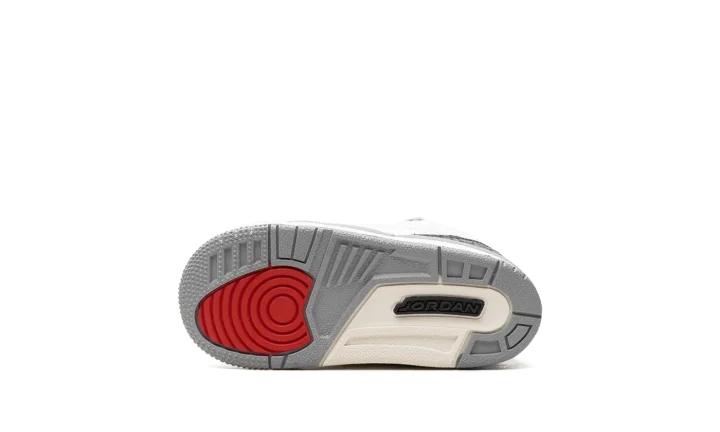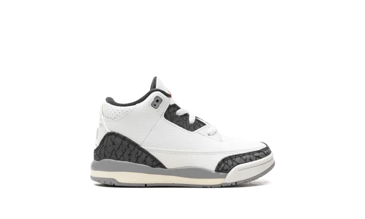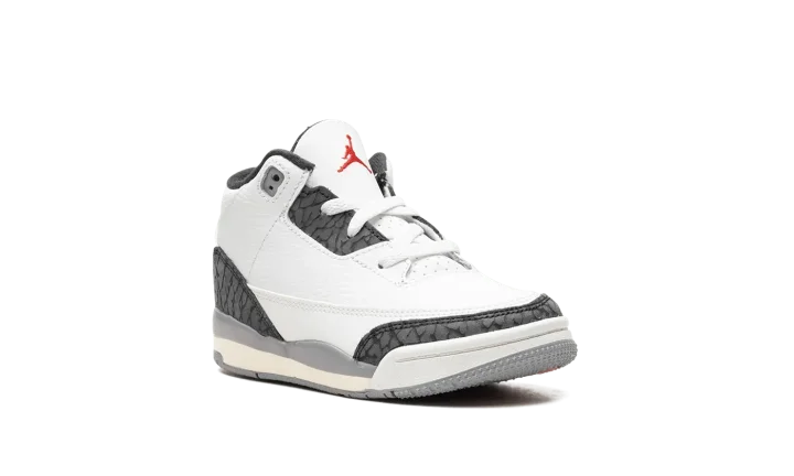 Start their sneaker collection right with the Air Jordan 3 TD 'Cement Grey'! This toddler-sized shoe shrinks a legendary look down to the perfect size for little feet. It features the iconic white tumbled leather upper, bold Fire Red accents, and the beloved elephant print in Cement Grey. With a durable leather build and lightweight cushioning, this shoe offers tiny style with big heritage. Get your future sneakerhead a piece of history!