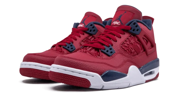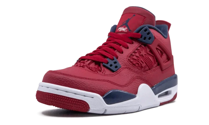 The Air Jordan 4 GS "FIBA" is the youth sizing of Michael Jordan's fourth signature basketball shoe in a special makeup for the 2019 FIBA Basketball World Cup. The tournament is held every four years with men's national teams competing for the crown of international basketball champion. Here, the commemorative Air Jordan 4 for children dons a Gym Red leather upper with textured rubber geometric shapes fused on the mesh mid-panel and tongue. Contrasting the look are Obsidian overlays on the eyelets and sock-liner with a Metallic Gold Jumpman logo appearing on the heel. A "For the Love of the Game" logo is located on the insole. An Obsidian mudguard sits on top of a crisp white rubber midsole with visible Air in the heel. The Air Jordan 4 "FIBA" in grade school sizing was released on September 7th, 2019.