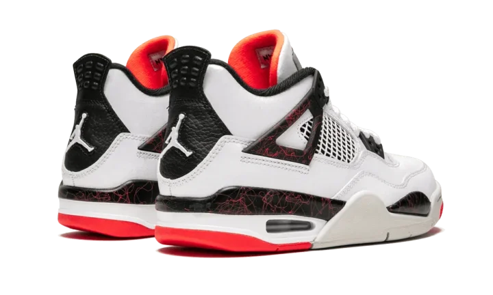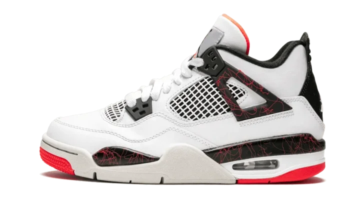 The Air Jordan 4 GS "Hot Lava" is a kids sneaker that honors one of the most essential Michael Jordan signature models ever released. This Air Jordan 4 features a white nubuck upper. Swirly red lines accent black portions of the midsole as well as the famous wings on the Jordan 4's lacing system. The bright hue is also featured on portions of the outsole and the tongue liner to add a bold pop of color to the Air Jordan 4 GS "Hot Lava."