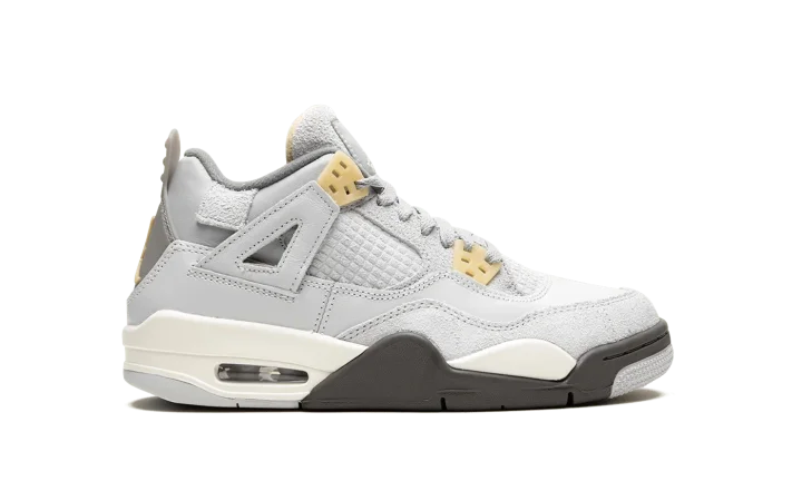 The Air Jordan 4 Craft GS "Photon Dust" is the youth sizing of the modified version of the classic basketball shoe made from a compelling combination of materials. From a greater collection of "Craft" sneakers, the Jordan 4 Craft "Photon Dust" is complete with an upper constructed from a mix of leather, suede, and textiles—all in neutral hues. The oxidized design of the lace eyelets and the Jumpman logo on the heel gives the shoe a decidedly vintage look. Underfoot, a cream-tinged midsole appears below a grey suede overlay on the forefoot. A combination of light and dark grey panels are found on the outsole. Release date: February 11, 2023