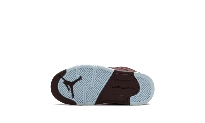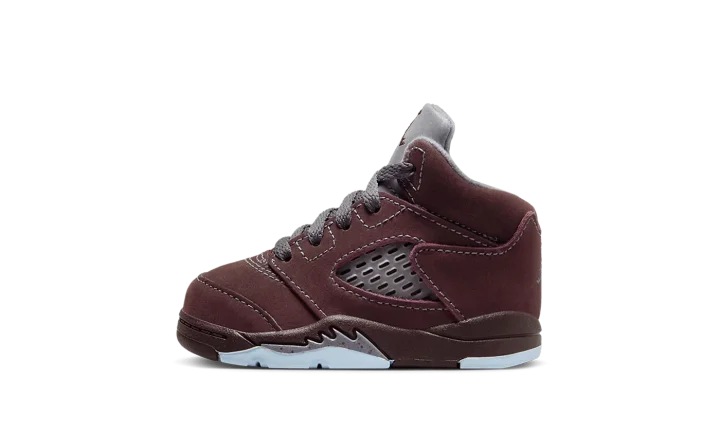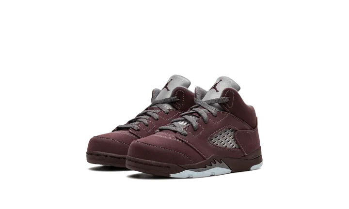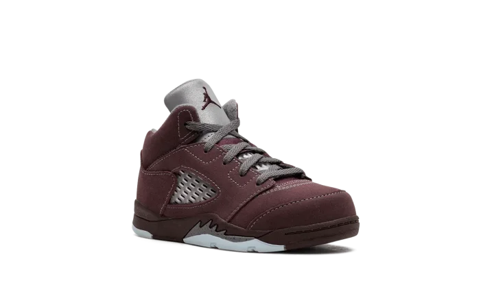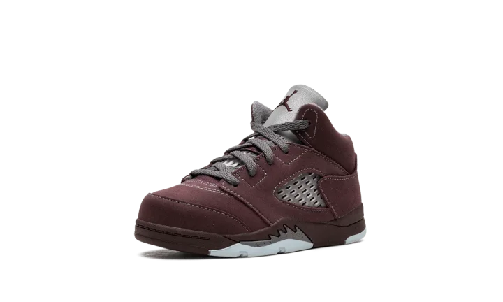 The Air Jordan 5 Retro SE TD "Burgundy" is toddler sizing of the classic colorway that originally released in 2006. Debuted as part of Jordan Brand's "LS" or "lifestyle" collection, the Jordan 5 "Burgundy" was one of the model's first non-original colorways, and one of its most popular releases of the 2000s. The modern edition is nearly identical to the original 2006 release. Deep Burgundy suede appears on the shoe's upper. Translucent netting is found on the mid-panel and on the tongue. A Deep Burgundy Jumpman appears on the silver reflective tongue and a silver Jumpman is embroidered on the heel. Light Graphite shark tooth detailing is found on the burgundy midsole. Release date: September 9, 2023