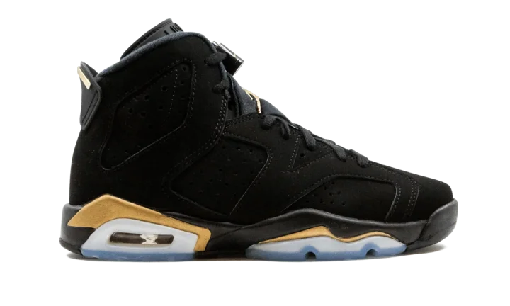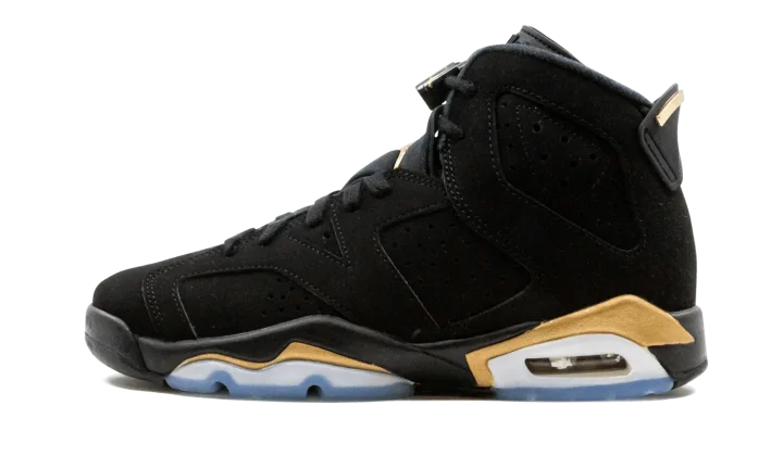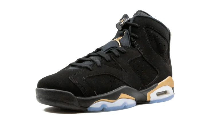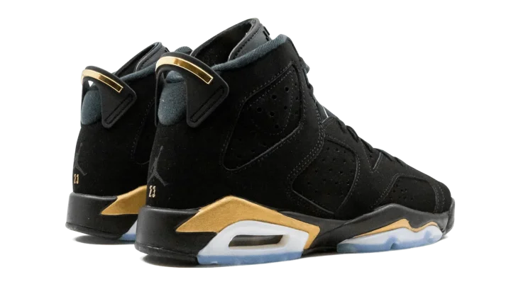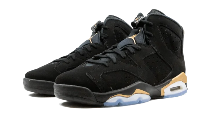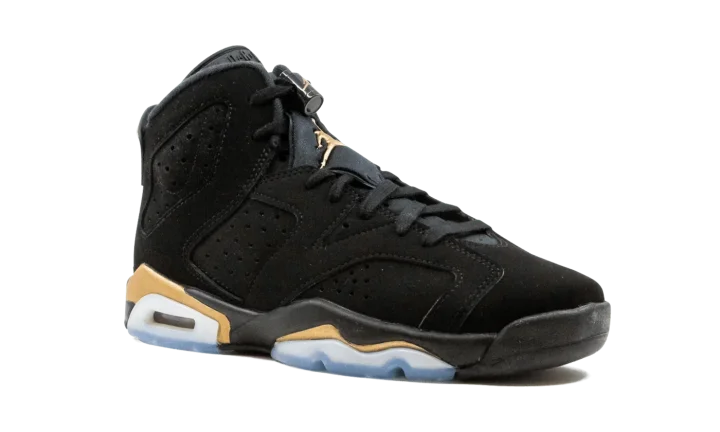 The Air Jordan 6 GS "DMP 2020" shrinks one of the most legendary looks of Michael Jordan's sixth shoe to fit the feet of children everywhere. Originally released in 2006 as part of Jordan Brand's "Defining Moments Pack" that pays homage to Jordan's NBA Championship heritage, the design was brought back in 2020 as a standalone release. Just like its adult-sizing counterpart, this tiny sneaker features black nubuck across the entire upper, including the overlays and embroidered Jumpman branding on the heel. An embroidered gold Jumpman appears on the tongue while the heel spoiler is finished off with gold accenting. Contrasting metallic gold appears above the visible Air unit in the heel and forefoot.