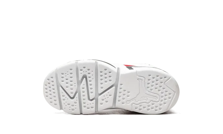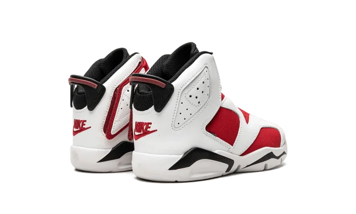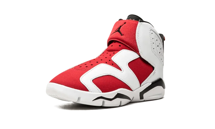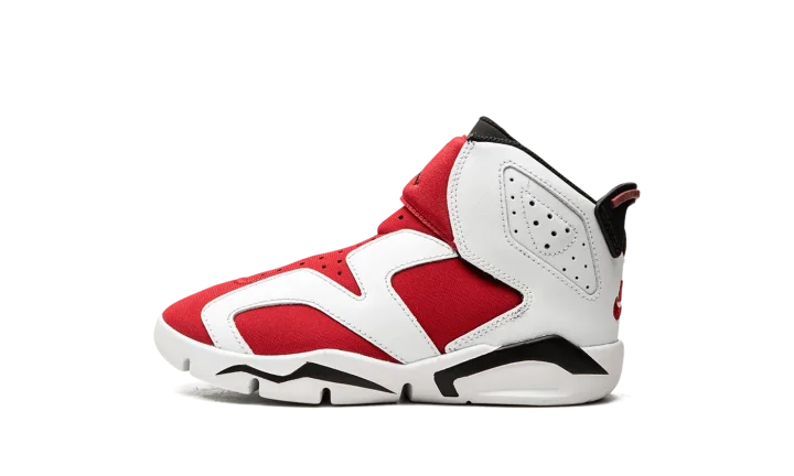 The Jordan 6 Little Flex "Carmine" is the preschool sizing of the original colorway of Michael Jordan's legendary sixth signature shoe. Inspired by the Air Jordan 6 worn by Jordan with the Chicago Bulls in 1991, the "Carmine" edition of the Jordan 6 Little Flex features a Carmine or red synthetic nubuck base with contrasting white leather overlays. A black Jumpman appears on the neoprene overlay on the tongue. Sans laces, the Jordan 6 Little Flex is a slip-on shoe for kids that excels in easy on/off wearability. An old school red "Nike" logo appears on the heel.