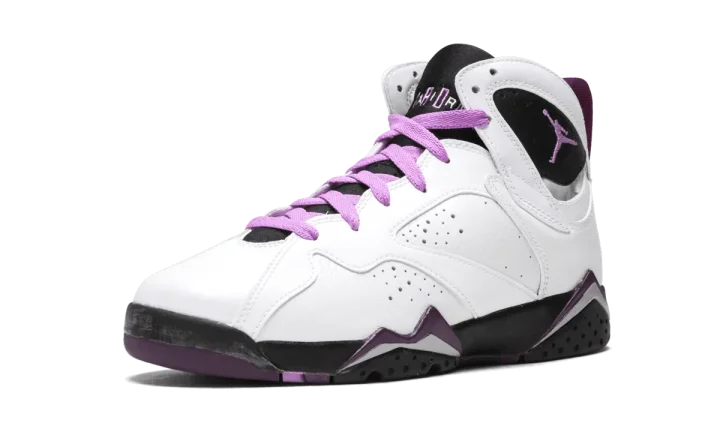 One of the many great colorways of the Air Jordan 7 released in 2015 just for the young lady Air Jordan fans, this colorway features a white leather upper with black and Fuchsia Glow accents. Light pink detailing adds to their feminine color scheme.