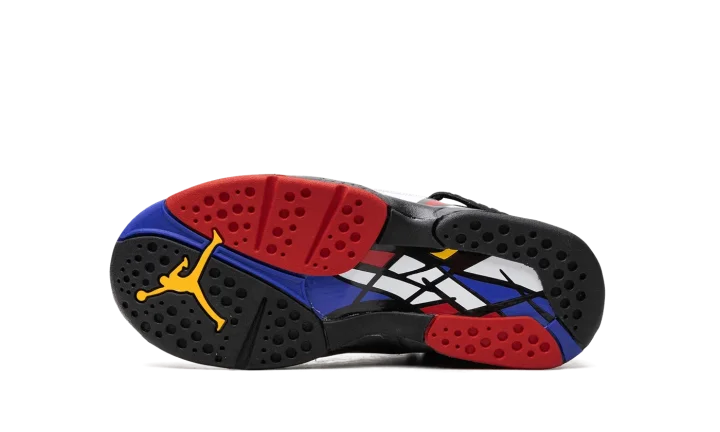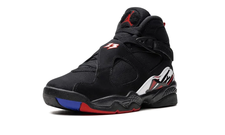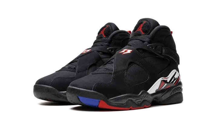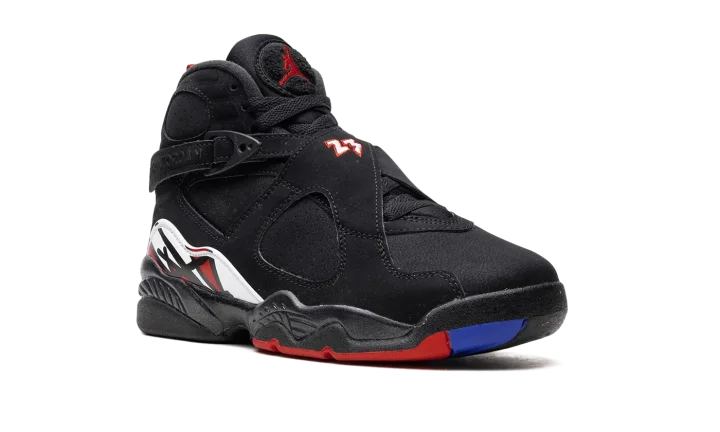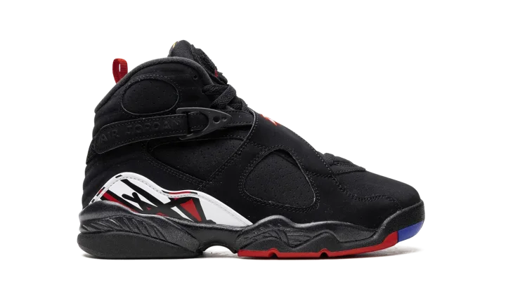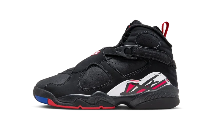 The Air Jordan 8 "Playoffs 2023" is the youth sizing for the 2023 re-release of an original colorway of the basketball shoe that was worn by Michael Jordan during the 1993 NBA Playoffs. The Jordan 8 "Playoffs" is a classic and beloved look for Jordan's eighth signature model in his Chicago Bulls team colors. On this 2023 iteration of the design, it features all the same details that made the original version a legendary sneaker. The "Playoffs" Jordan 8 features a black synthetic nubuck upper with supportive cross straps. Red pull tabs on the heel are a nod to the original color of the design on the '93 release. Jumpman branding appears on the model's signature chenille Jumpman patch and a brushstroke-like graphic is found on the mudguard. Release date: September 30, 2023