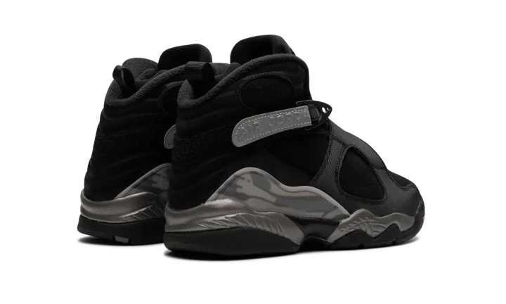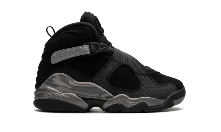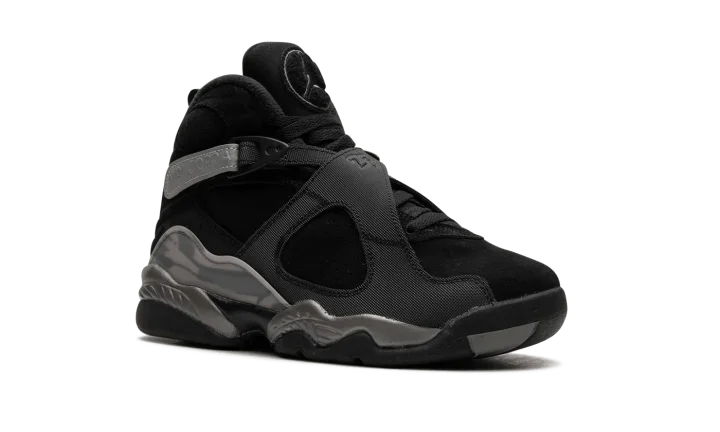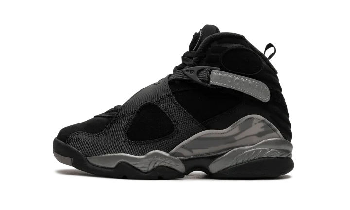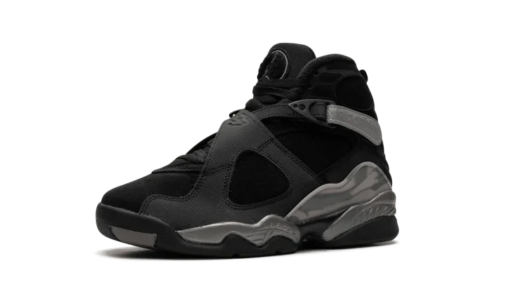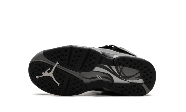 The Air Jordan 8 Winterized GS "Gunsmoke" is the youth sizing of the retro basketball shoe designed to withstand harsh weather conditions. Made to hold up against cold weather, the "Gunsmoke" Jordan 8 Winterized has a water-resistant suede and synthetic construction in black, Gunsmoke, and Metallic Silver. The Jordan 8's signature cross-straps are treated with a reflective finish on the rear portion with "Air Jordan" branding seen on the sides. A chenille Jumpman patch appears on the tongue. The Jordan 8's signature abstract graphic detailing is found on the mudguard in a cream and grey pattern. Release date: November 27, 2023