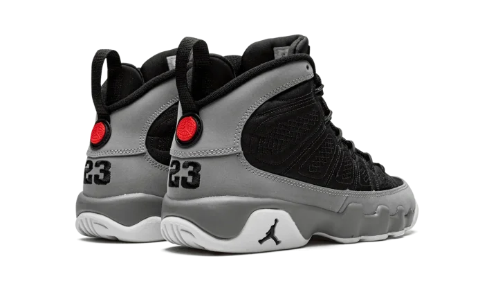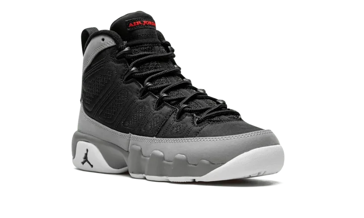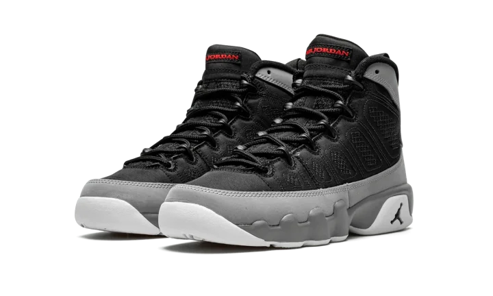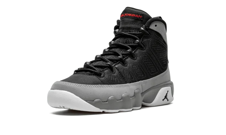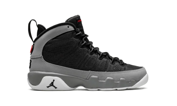 The Air Jordan 9 GS "Particle Grey" is the youth sizing for the simple yet striking take on a fan favorite Air Jordan model. This Jordan 9 for kids features a black textile base with Particle Grey leather overlays and contrasting red accents for the branding areas on the heel and tongue. A white rubber outsole completes the design.