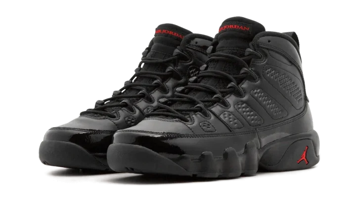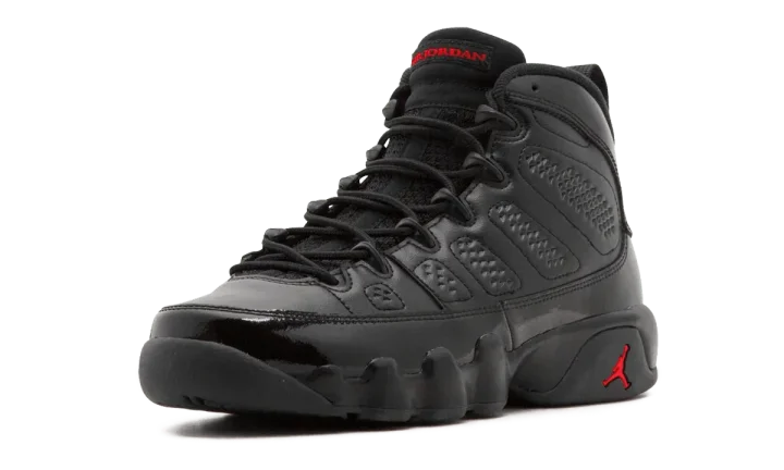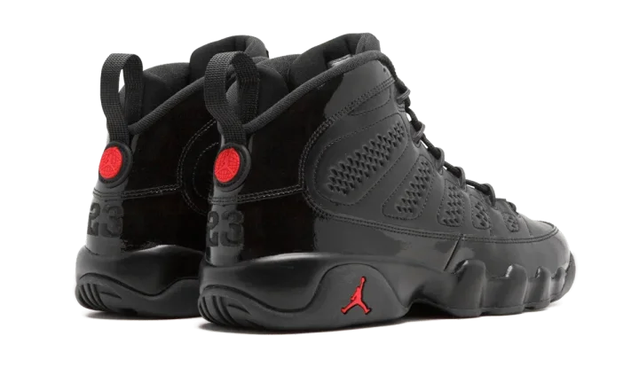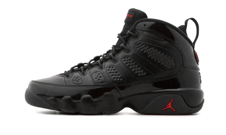 The Air Jordan 9 "Bred" is one of the most renowned colorways of Michael Jordan's ninth signature sneaker, which was first released in 1994. The upper on the grade school version of the Air Jordan 9 "Bred" is a mix of leather and nubuck. The sneaker is primarily black with subtle red accents, including the Jumpman logo on the midsole. Jordan's number 23 is stitched in tonal black on the heel.