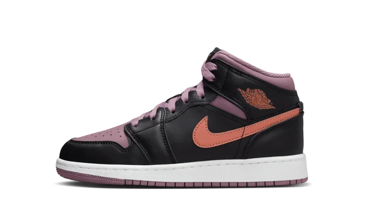 The Air Jordan Retro 1 Mid SE GS "Black Sky J Mauve" delivers a fresh, autumnal take on an all-time classic for Grade School sneakerheads. This special edition Mid-top pairs a Black leather base with rich Sky J Mauve overlays and vibrant Sky J Orange accents on the Swoosh and Wings logo. The durable leather upper and Air-Sole cushioning provide the comfortable support and iconic hoops style your young one needs to stand out.