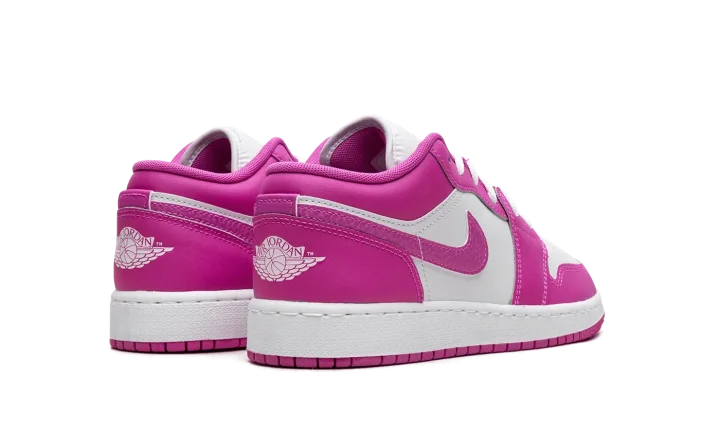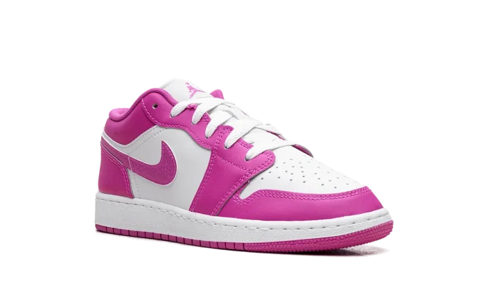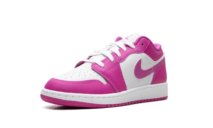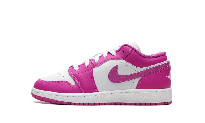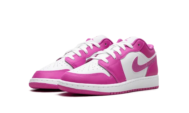 Experience the iconic style reimagined with the Jordan 1 Low GS "Fire Pink," also known as the "Pink Blast." This Grade School exclusive brings a vibrant, eye-catching colorway to the legendary low-top silhouette. Its durable construction and Air-Sole cushioning ensure comfort and support for everyday wear. The vivid pink accents pop against the clean base, making it a standout shoe for young sneaker enthusiasts. Step into a piece of sneaker history with a bold, energetic twist.