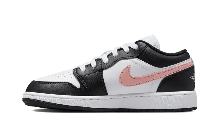 Unleash a lively pop of color with the Jordan 1 Low GS "Rust Pink Accent," a Grade School sneaker that delivers a fresh take on the 1985 classic. This low-top combines a clean White base with contrasting Black overlays and a vibrant Rust Pink hue on the heel and outsole. Crafted from durable leather with responsive Nike Air cushioning, this shoe merges iconic heritage style with lasting comfort for active, all-day wear.