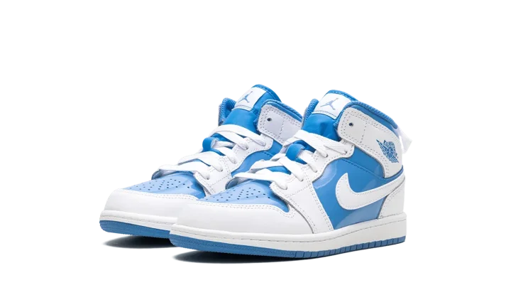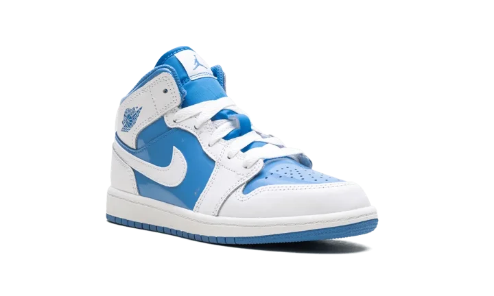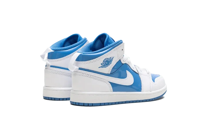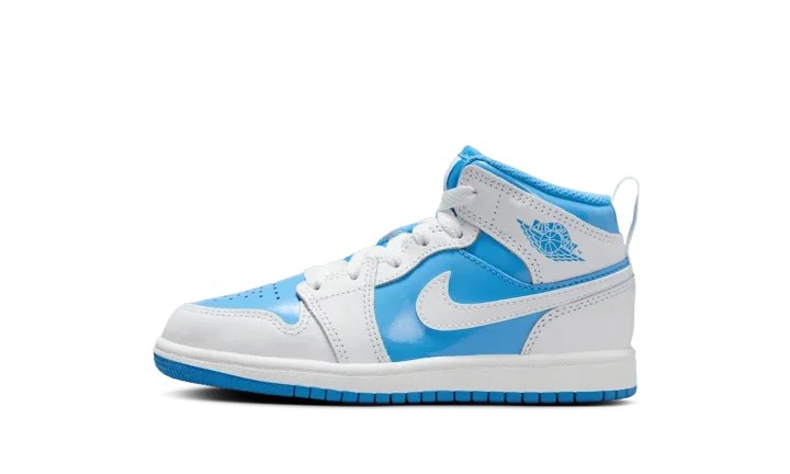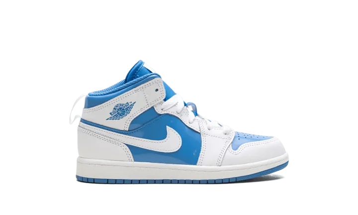 Get your little one flying high in the Jordan 1 Mid PS "Legend Blue." This Preschool-sized shoe showcases Michael Jordan's iconic UNC-inspired colorway, featuring crisp white and vibrant Legend Blue accents on the patent leather overlays. The mid-top silhouette offers a supportive fit, while the Air-Sole unit delivers lightweight cushioning. This stylish sneaker ensures your child is repping Jordan's legendary beginnings with every comfortable step.