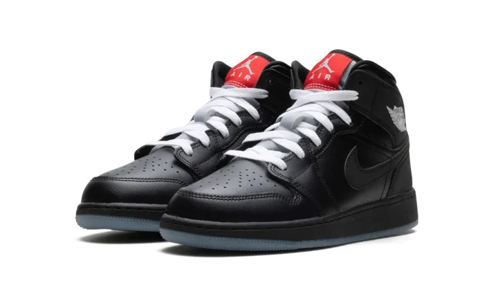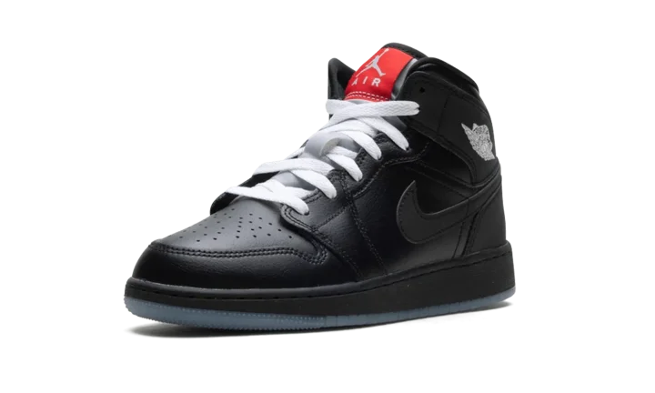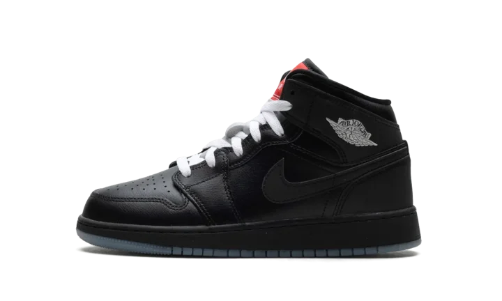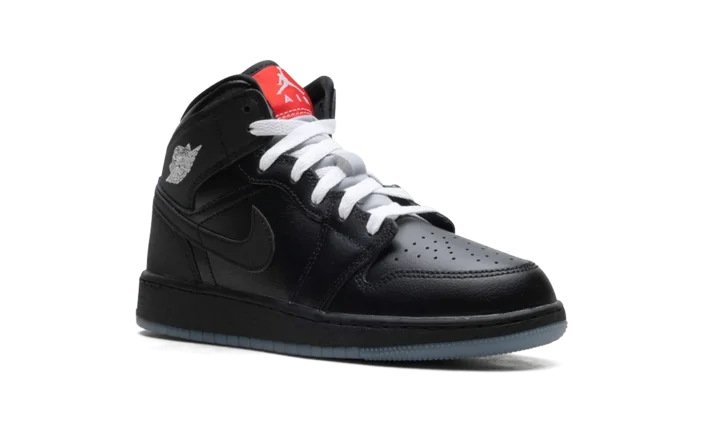 Own a stealthy legend reimagined with the Jordan 1 Mid SE GS 'Black Metallic Reimagined' sneaker. This Grade School edition honors the iconic "Black Metallic" AJ5, translating its best features onto the mid-top silhouette. It boasts a sleek, all-black leather upper with special 3M reflective silver accents on the Swoosh and collar that shine under the light, plus a cool University Red hit on the tongue. With encapsulated Nike Air cushioning and a fresh translucent outsole, this kick gives young sneakerheads comfort and undeniable flair.