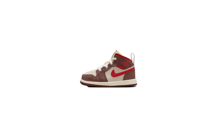 Fuel your toddler's style with the adorable Jordan 1 Mid SE TD 'Bread & Butter Sole' sneaker! This playful edition of the iconic AJ1 mid-top is inspired by breakfast classics, featuring a supple suede upper in warm, neutral tones. The shoe boasts fun details like a detachable buttered toast hangtag and is built with soft foam cushioning underfoot for all-day adventures. It's the perfect, durable kick to wrap little feet in comfort and premium, story-driven style.