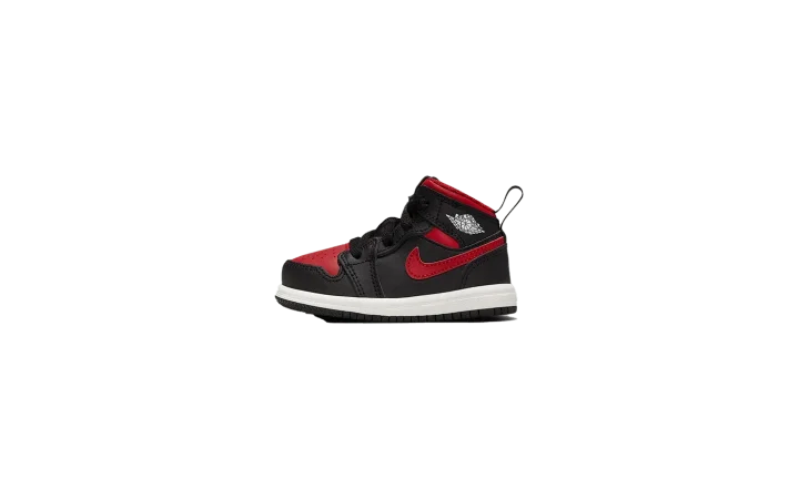 It's never too early to start their sneaker rotation! The Jordan 1 Mid TD "Bred Twist" brings the legendary "Bred" colorway to Toddler sizes with a fun, new spin. This mini Mid-top features the iconic black and Varsity Red color-blocking in a durable leather and synthetic construction. Designed with lightweight cushioning and a supportive fit, this tiny classic ensures comfort for their every little step, making it the perfect piece of iconic footwear for your budding sneakerhead.