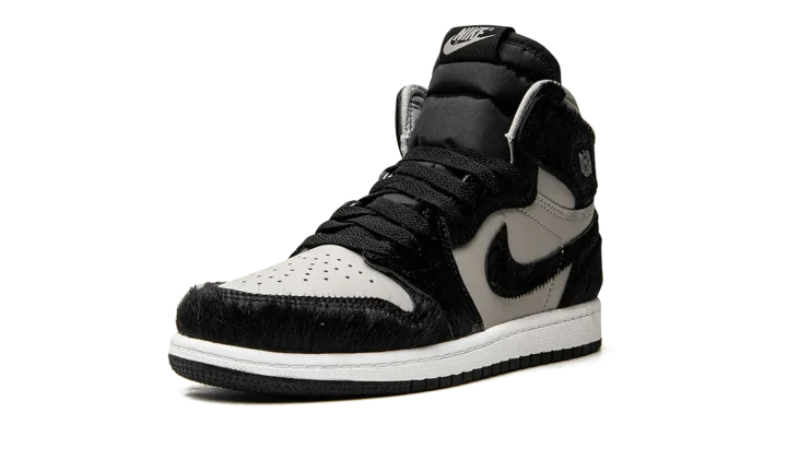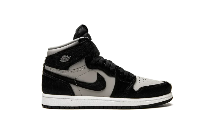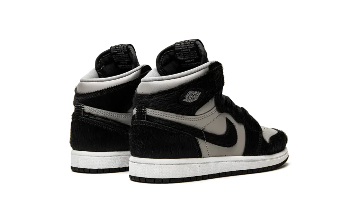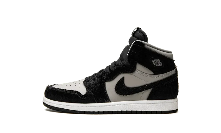 The Air Jordan 1 High OG PS "Twist 2.0" is the preschool sizing of the classic basketball shoe that modifies the popular "Twist" colorway with a new grey leather base. The original Women's Jordan 1 High "Twist" was inspired by the model's "Black/White" colorway from 1985, but with a, no pun intended, twist: instead of black leather overlays per the original style, the "Twist" incorporated black faux-pony-hair panels. The "Twist 2.0" also features the material, along with a new grey leather base that replaces the "Twist's" original white leather. A Metallic Silver "Wings" emblem is found on the collar while classic "Nike Air" and Swoosh branding appear on the tongue. A white midsole and black rubber outsole complete the look. Release date: December 22, 2022