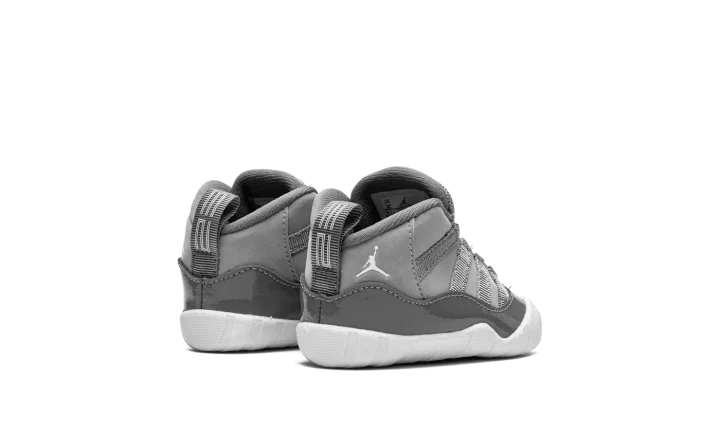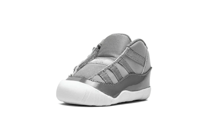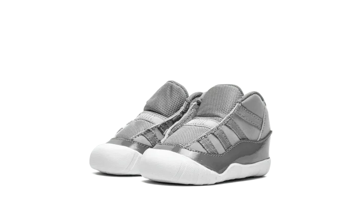 The Jordan 11 Crib Bootie "Cool Grey" is the infant sizing of the popular colorway that debuted in 2001 before returning as a Holiday 2021 release by Jordan Brand. The Air Jordan 11 "Cool Grey" first appeared on sneaker store shelves in March 2001, and was the retro basketball shoe's first non-original colorway. Michael Jordan famously wore the "Cool Grey" regularly with the Washington Wizards in 2001 and 2002, which helped its popularity. Despite being made for tiny feet, the Crib Bootie "Cool Grey" keeps the integrity of the shoe's original design with a nubuck base and patent leather mudguard—both in Cool Grey. A white Jumpman is found on the collar. A nylon pull tab on the heel assists with wearability. The mesh tongue appears in Cool Grey and a white rubber sole completes the look underfoot. Release date: December 11, 2021