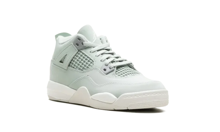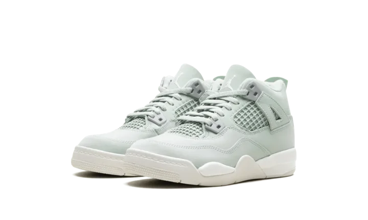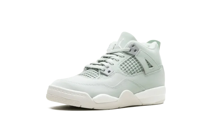 Watch your little star shine in the Jordan 4 Retro PS 'Abundance' sneaker! This Preschool edition of the legendary AJ4 brings a fresh, luxurious feel with its soft, Seafoam Green nubuck upper. Metallic Silver accents, inspired by the "Pure Money" colorway, add a brilliant pop to the molded eyelets. Built with a supportive structure and cushioned foam underfoot, this iconic shoe offers all-day comfort and a premium look for the next generation of greatness.