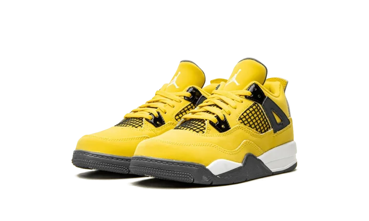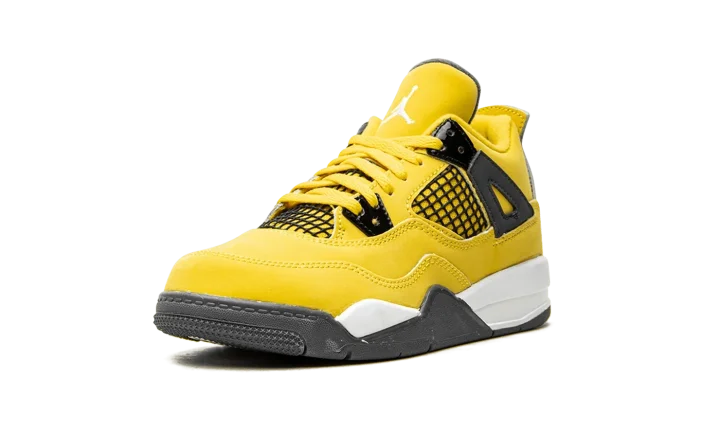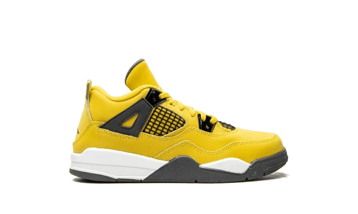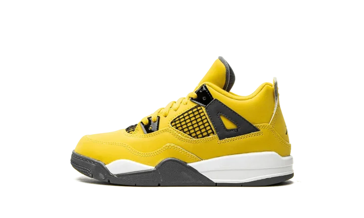 Tour yellow/white/dark blue grey leather Air Jordan 4 Retro "Lightning" sneakers from JORDAN featuring panelled design, signature Jumpman motif, round toe, front lace-up fastening, ankle-length, rubber sole and signature Air cushioning. These styles are supplied by a premium sneaker marketplace. Stocking only the most sought-after footwear, they source and curate some of the most hard to find sneakers from around the world..