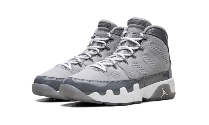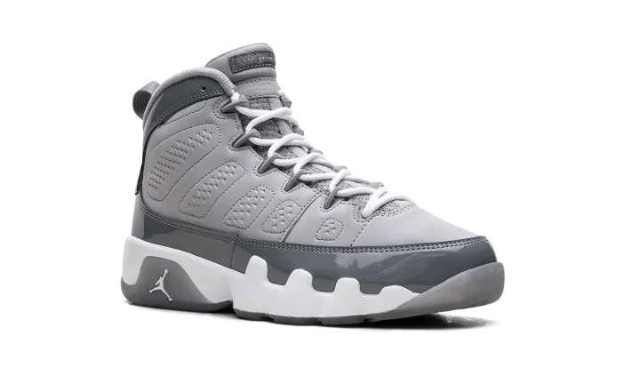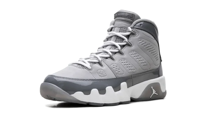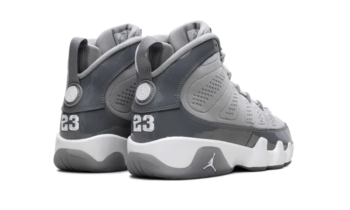 The Air Jordan 9 GS "Cool Grey" is a grade school version of Michael Jordan's 9th signature shoe. The kids edition of the 2025 AJ9 "Cool Grey" retains the key details of the Jordan 9 colorway that first released in 2002. The upper combines different shades of grey and features a patent leather mudguard. The outsole also features the Cool Grey tone, and Jordan's jersey number "23" appears on the heel.