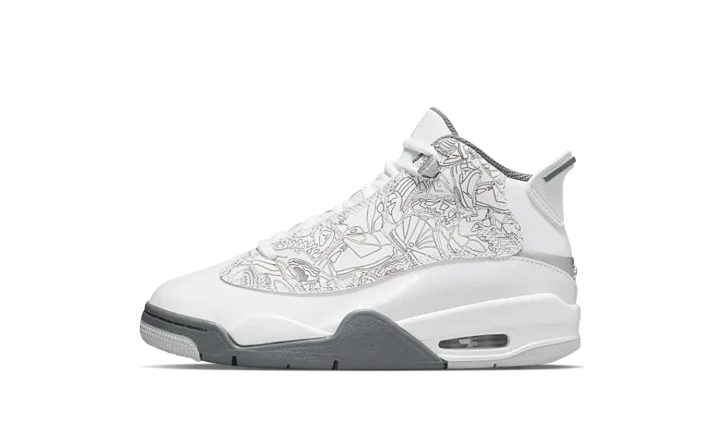 Celebrate the first Jordan hybrid with the Jordan Dub Zero PS, a preschool version in the sleek "White Metallic Silver Neutral Grey Cool Grey" colorway. This fusion model features design elements from several classic Air Jordans, including laser-etched graphics on the leather upper and a shiny patent leather mudguard. A cushioned midsole provides comfortable support for active kids, ensuring iconic style and a piece of sneaker history for the playground.