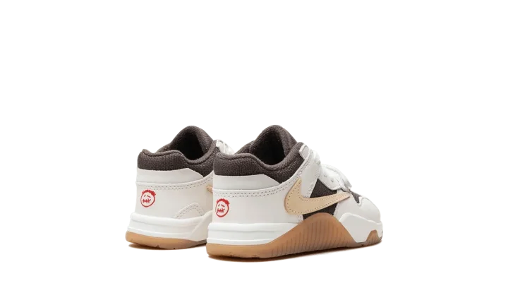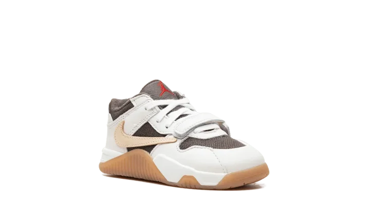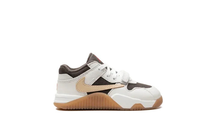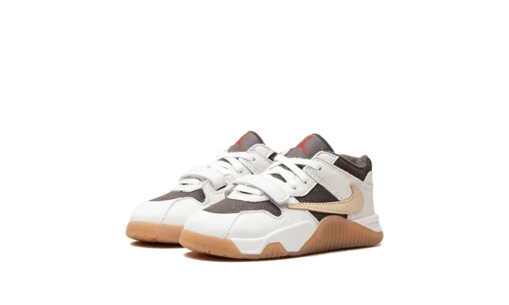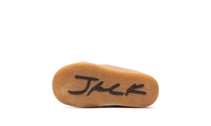 The Travis Scott x Jordan Jumpman Jack TD "Sail" is the toddler sizing of Travis Scott's first-ever signature shoe with Jordan Brand. After high-profile collaborations with Jordan Brand and Nike, Travis Scott debuted his first signature shoe, the Jumpman Jack, with Jordan in 2024. The shoe features elements from Scott's previous collaborations, including a backwards Swoosh and his signature branding. Specifically, the upper has a brown textile base, Sail leather overlays, and a backwards cream leather Swoosh on the lateral side and a standard cream leather Swoosh on the medial side. A white leather midfoot strap provides a lockdown fit. As mentioned, Travis's signature branding appears throughout the design. Underfoot, a gum rubber outsole completes the look. Release date: February 4, 2024