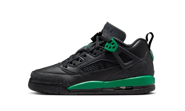 A fusion of iconic design for the younger sneaker enthusiast! The Jordan Spizike Low GS "Pine Green" for Grade Schoolers pays tribute to Spike Lee's legacy by blending elements from five classic Jordan models into one sleek low-top. This version features a predominantly Black upper accented with vibrant Pine Green details and signature elephant print overlays. It delivers comfortable Air cushioning, durability from its leather and synthetic construction, and a bold look that celebrates basketball history.