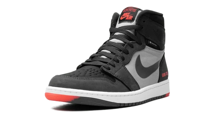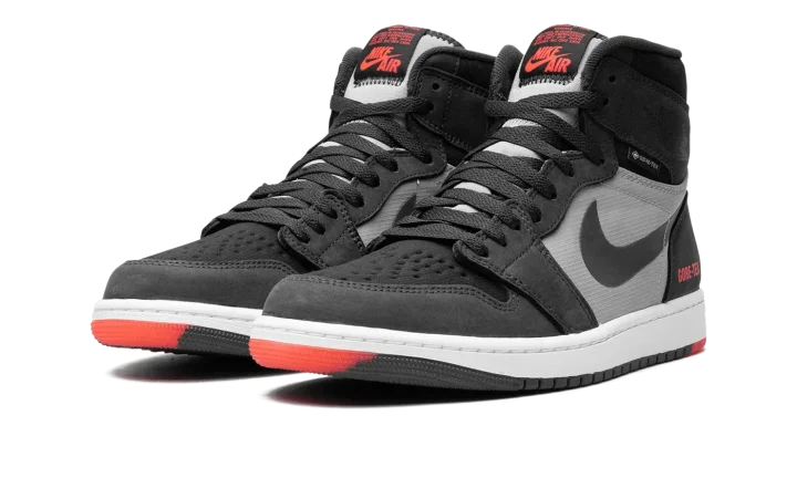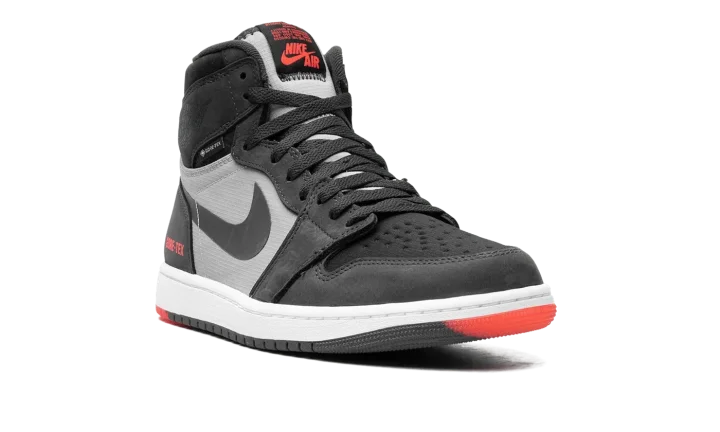 The Air Jordan 1 Element "Bred" is a colorway of the weatherproof version of Michael Jordan's first signature shoe. The Jordan 1 Element first appeared as part of Jordan Brand's Holiday 2021 collection and gives the venerable basketball and lifestyle shoe a rugged design that's meant to withstand the elements, including harsh weather conditions. A Gore-Tex membrane insulates the upper, with overlays on the toe cap, forefoot, and eyelets appearing in black nubuck. A grey ripstop-like material appears on the mid-panel and a black textile is found on the perforated toe. A black Swoosh logo is located on the sides. A tonal "Wings" logo resides on the collar and red "Gore-Tex" branding is printed on the lateral side of the heel. Release date: December 12, 2023
