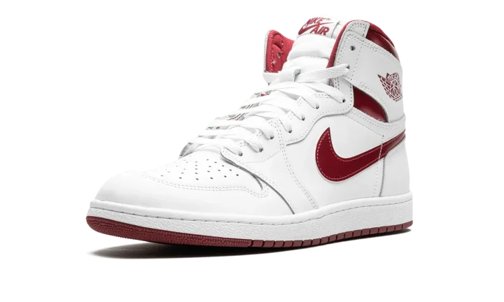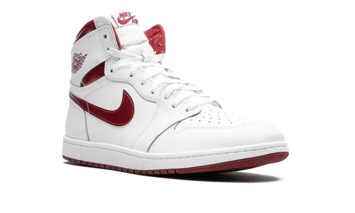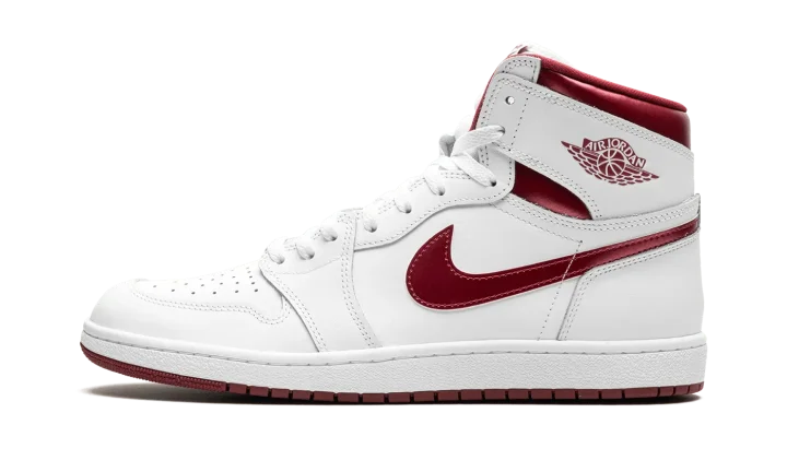 The Air Jordan 1 High '85 "Metallic Burgundy" is the modern re-release of an original colorway of Michael Jordan's first signature shoe that debuted in 1985. The "Metallic Burgundy" was an original colorway of the retro basketball shoe that was part of the "Metallic Pack" of metallic-detailed colorways. This marks the first time the "Metallic Burgundy" has been released since the original version from '85. True to the original, the modern colorway has a white leather upper with tonal leather overlays. Metallic Burgundy detailing is featured on the Swoosh branding on the sides, on the "Wings" on the collar, the "Nike Air" detailing on the tongue tag, and on the laces. A white rubber midsole and burgundy rubber outsole complete the look. Release date: February 16, 2024