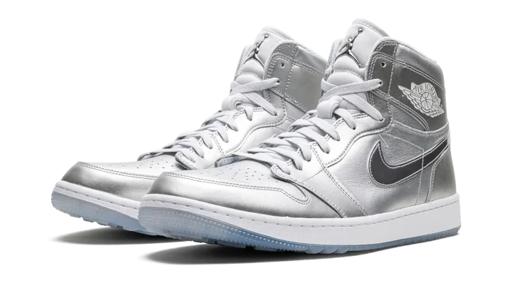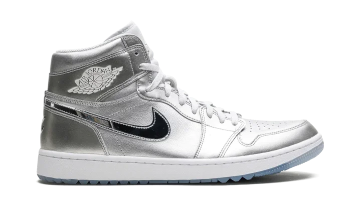 The Air Jordan 1 High Golf "Gift Giving" is a colorway of the iconic sneaker made for the golf course unofficially inspired by a former Japan-only release. The shoe we're referring to is the Jordan 1's "Tokyo" colorway that surfaced as part of Nike's former "Concept Japan" or "Co.Jp" collection from the early 2000s. Like the "Tokyo," the "Gift Giving" features Metallic Silver accents throughout its design, with the flashy silver hue appearing on the base and overlays. A shiny silver Swoosh can be found on either side of the shoe. A "Wings" logo appears on the collar and a silver Jumpman emblem is found on the tongue. Underfoot, a white rubber midsole and icy blue translucent outsole with small nubs completes the look. Release date: November 17, 2023