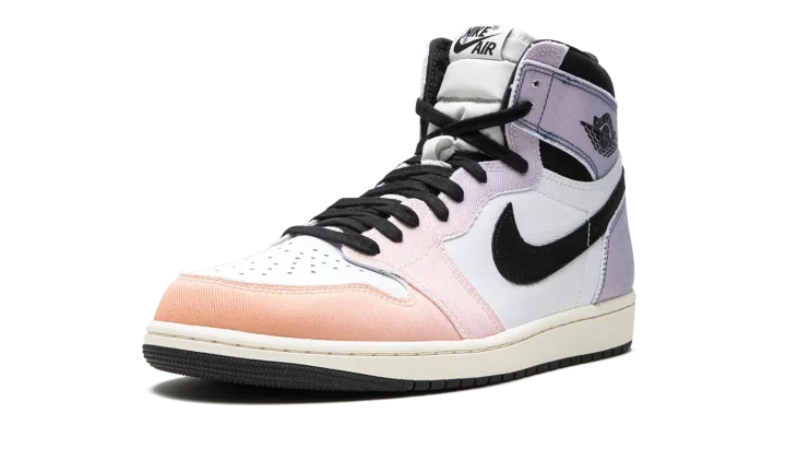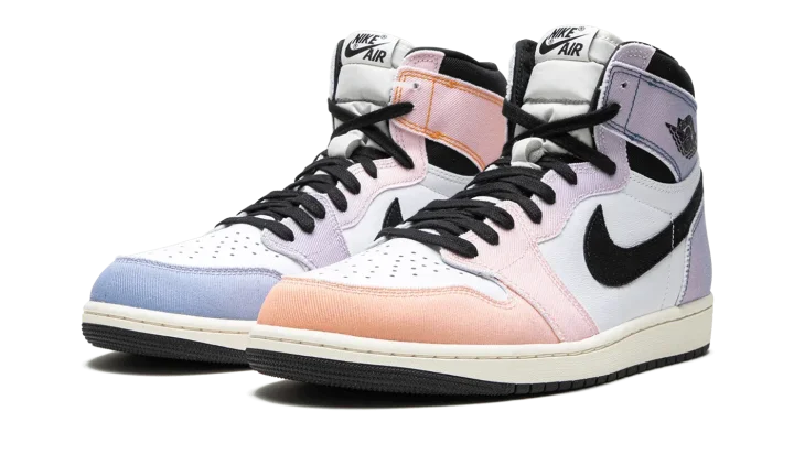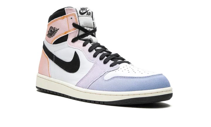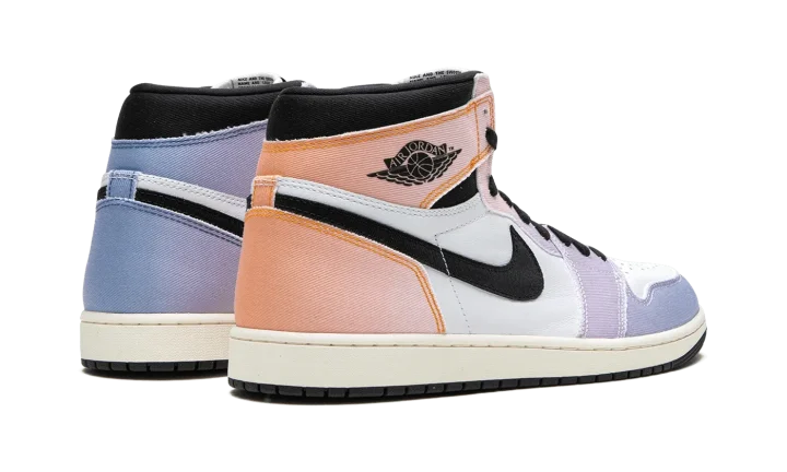 The Air Jordan 1 High OG "Skyline" is a colorway of Michael Jordan's first signature shoe that is inspired by the original Jordan 1 campaign rollout. In a unique way, the Jordan 1 High OG "Skyline" is influenced by the purple and orange hues of the skyline photo of "The GOAT" wearing the original Jordan 1. The shoe features a white leather base with denim overlays that are designed with a Vivid Orange appearance that gradients into Lilac towards the heel, a nod to the orange-to-purple hue of the skyline. A black "Wings" logo appears on the collar and "Nike Air" detailing is found on the tongue. Release date: April 8, 2023