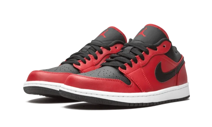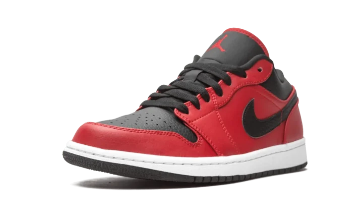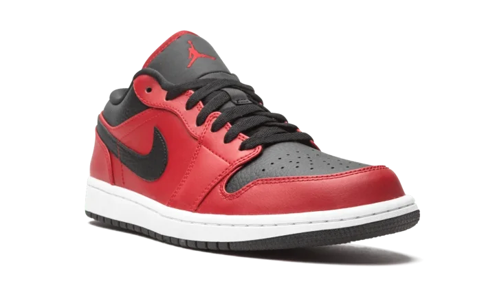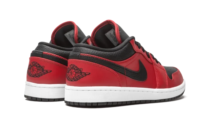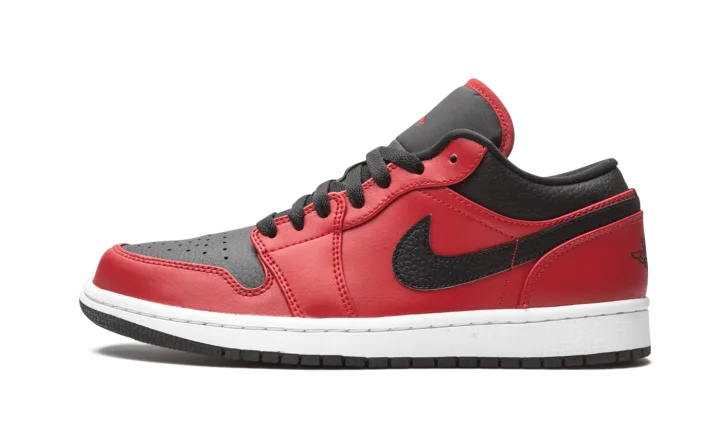 The Air Jordan 1 Low "Gym Red" is a Chicago Bulls inspired colorway of Michael Jordan's iconic first signature shoe in its low-top silhouette. The "Gym Red" shade of red has appeared on countless great Jordan models over the years, with this versatile Jordan 1 Low being one of our favorite looks to date. The colorway makes use of the Bulls' legendary black and red color scheme by featuring red leather overlays on the mid-panel, eyelets, forefoot, and heel. A black leather Swoosh on either side of the shoe balances out the look. Black leather appears on the perforated toe and around the collar playing up the Bulls inspired theme. A classic black "Wings" logo is stitched onto the heel and a red Jumpman is embroidered on the black nylon tongue. Black shoe laces and red trim on the top of the tongue finish off the look of yet another desirable Air Jordan 1 Low.