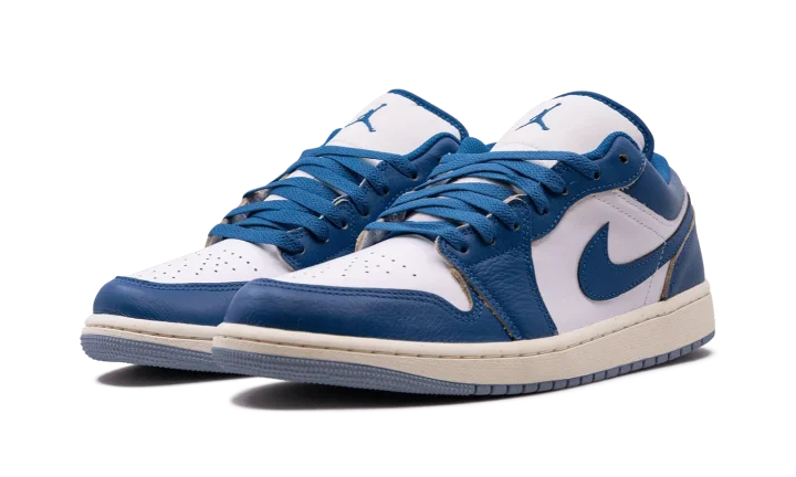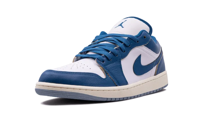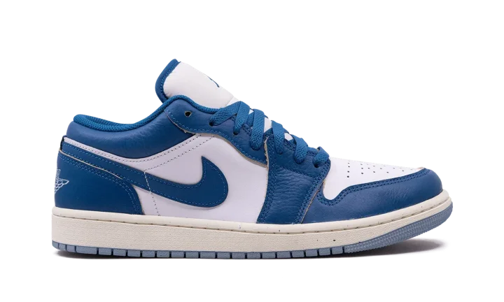 The Air Jordan 1 Low SE "Industrial Blue" is a classic-looking colorway of the retro basketball shoe. Released in 2024, the Jordan 1 Low SE "Industrial Blue" features a white leather base and Industrial Blue leather overlays and Swoosh branding. An old school "Wings" logo is embroidered on the heel and blue Jumpman is found on the tongue. The laces and inner lining have an Industrial Blue finish. Underfoot, a Sail rubber midsole and a grey rubber outsole complete the look. Release date: April 20, 2024