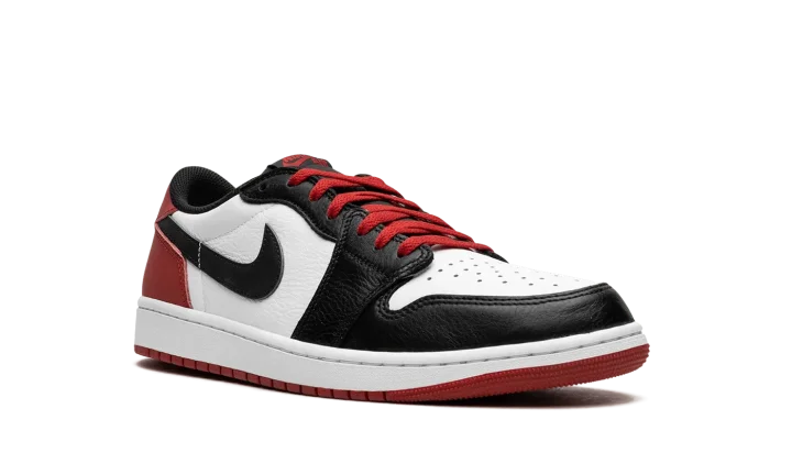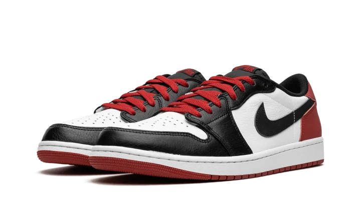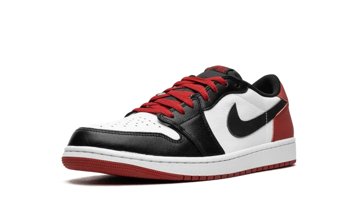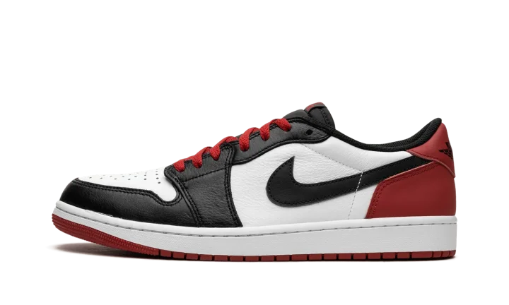 The Air Jordan 1 Low OG "Black Toe" is a colorway of the classic low-top retro basketball shoe that shows love to one of the model's original styles. The "Black Toe" was an original colorway of the Air Jordan 1 High in 1985, and was worn by Michael Jordan with the Chicago Bulls during his rookie season in the NBA. Here, the colorway is transferred onto the Jordan 1 Low OG. The shoe features a white leather base with black leather overlays on the toe cap, forefoot, and eyelets. A black leather Swoosh logo appears on the sides. Varsity Red leather can be found on the heel, as can a black "Wings" logo on the heel tab. Classic "Nike" and Swoosh branding appear on the tongue tag. A white rubber midsole and black rubber outsole complete the look. Release date: July 28, 2023