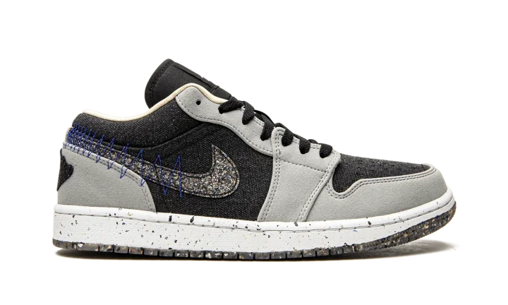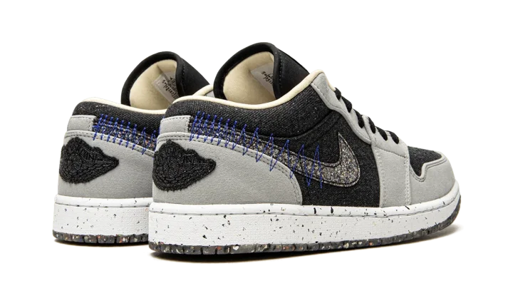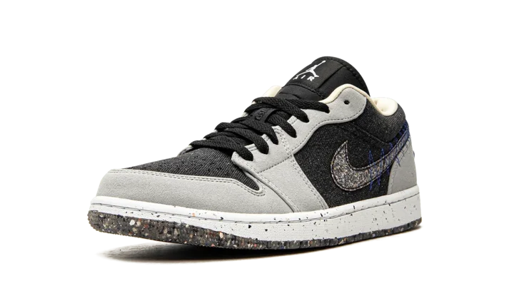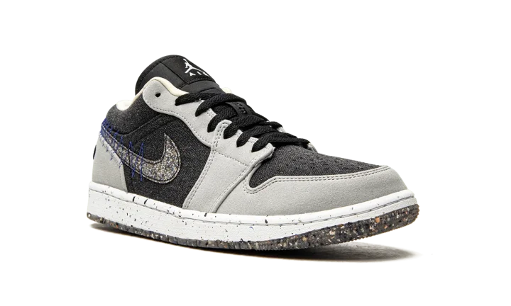 The Air Jordan 1 Low Crater "Light Smoke Grey" is an environmentally friendly version of the retro basketball shoe that was released in Fall 2021. A core offering from Nike's "Move to Zero" initiative that places an emphasis on sustainability, the Jordan 1 Low Crater is an alternative to the standard Air Jordan 1 Low that is constructed from recycled materials. A lightweight black textile appears on the shoe's perforated toe, mid-panel, and collar. The overlays are constructed from grey suede. A multicolor, threaded Swoosh composed of Nike Grind straps can be found on both sides and a modified, raised "Wings" graphic appears on the heel. Multicolor speckling on the white midsole and a Nike Grind outsole complete the look.