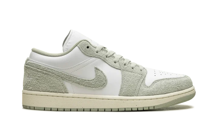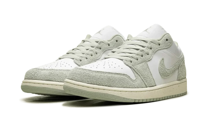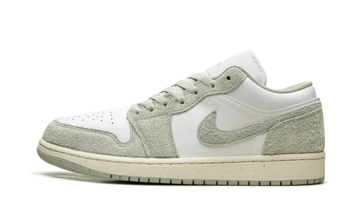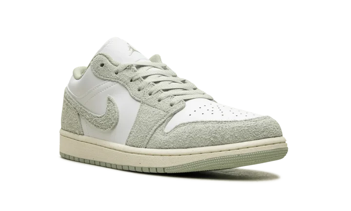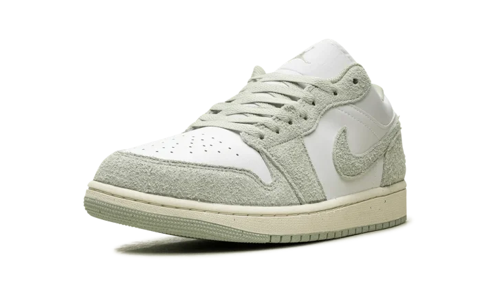 The Air Jordan 1 Low SE "Seafoam" is a colorway of Michael Jordan's first signature shoe with light green accents. From Jordan Brand's Spring 2024 collection, the "Seafoam" Jordan 1 Low features a white leather base and Seafoam hairy suede overlays and Swoosh branding. A classic "Wings" logo is embroidered on the heel, and a Swoosh appears on the tongue. Jordan Brand finishes off the look with a Sail rubber midsole and a Seafoam rubber outsole. Release date: April 2024