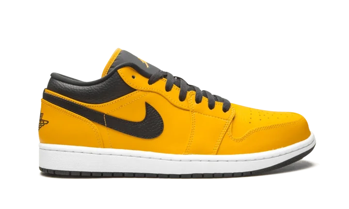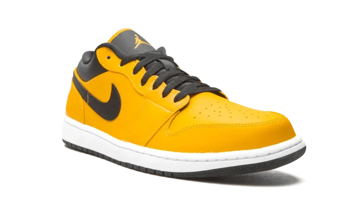 The Air Jordan 1 Low "University Gold/Black" is a standout colorway of Michael Jordan's first signature shoe in the versatile low-top silhouette. The Jordan 1 Low, along with the high-cut iteration of the shoe, originally released in 1985. Today, the shoe is one of the most popular footwear options on the market, and it's easy to see why on this "University Gold/Black" style. A combination of attention-grabbing University Gold leather can be found on the perforated toe and on the forefoot, mid-panel, and heel. The collegiate inspired shade of yellow also appears on the Jumpman emblem on the black nylon tongue. A black tumbled leather Swoosh on either side of the shoe pairs with the black embroidered "Wings" logo on the heel for a retro look.