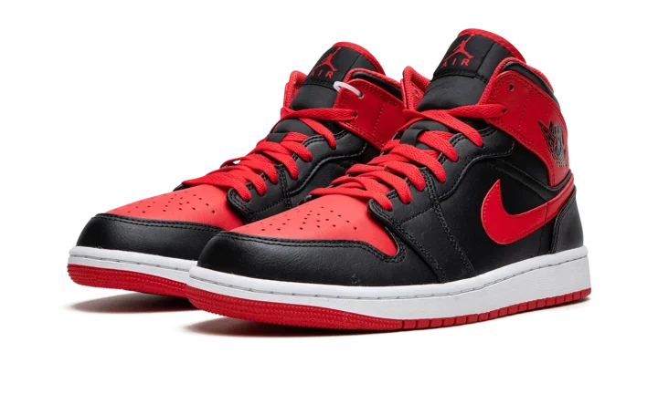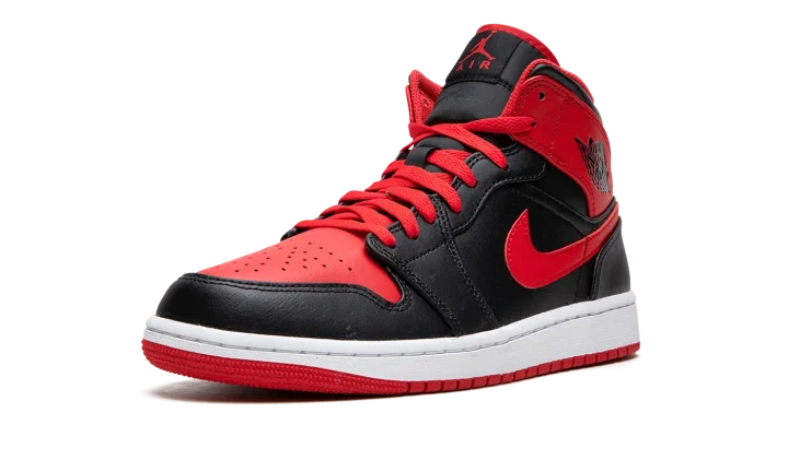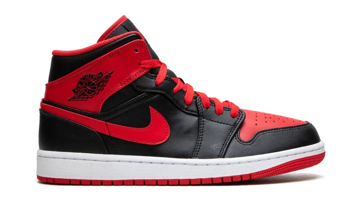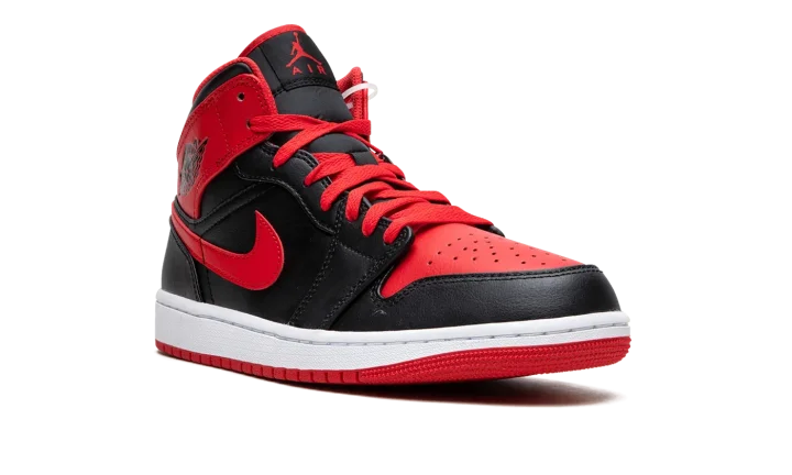 The Air Jordan 1 Mid "Alternate Bred" is a modified version of the classic, original Jordan 1 colorway that debuted in 1985. As its name suggests, the "Alternate Bred" switches up the look of the Air Jordan 1's "Bred" makeup by changing its black-and-red color block ever so slightly. The "Alternate Bred" features a Fire Red leather perforated toe, while the rest of the base is designed in black leather. A Fire Red leather Swoosh appears on both sides of the shoe. A red leather overlay is found on the collar with a black "Wings" logo. Underfoot, a white rubber midsole and Fire Red outsole complete the look. Release date: November 12, 2022