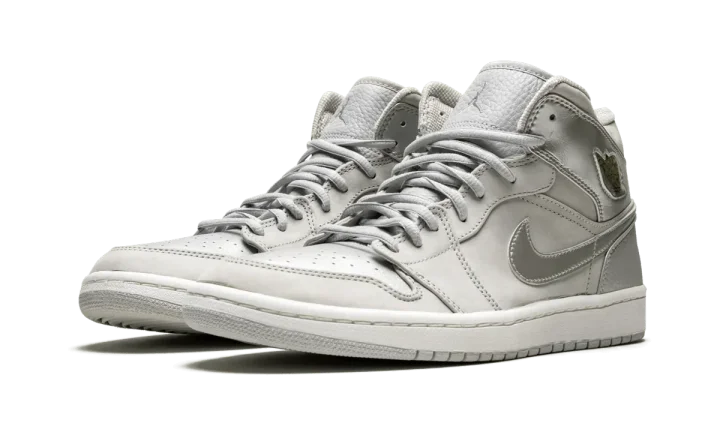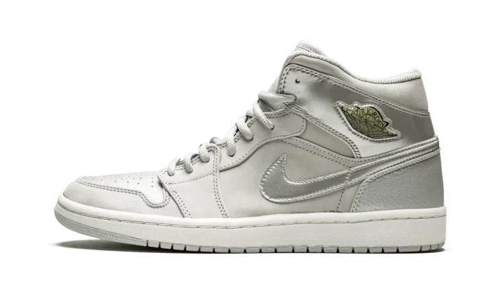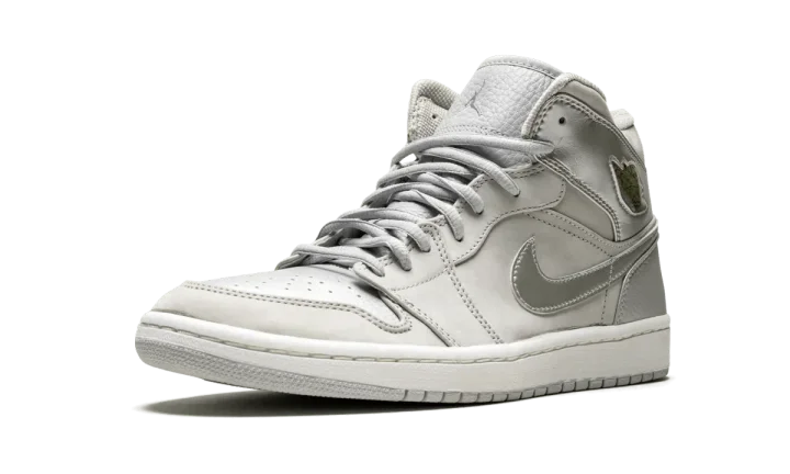 Released in 2001, this Air Jordan 1 features a Neutral Grey and metallic silver upper completed with jewel "wings" logos on each ankle.