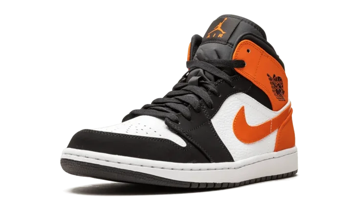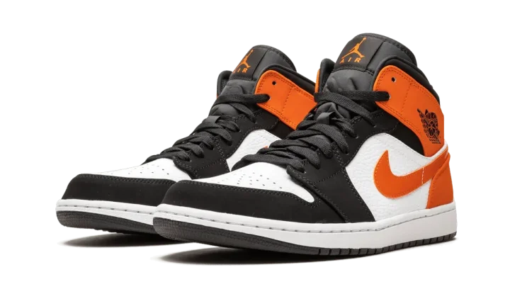 The Air Jordan 1 Mid "Shattered Backboard" is the mid-top version of the enormously popular "Shattered Backboard" colorway originally seen on the Jordan 1 High. The "Shattered Backboard" colorway remains one of the most sought-after non-OG designs of the Air Jordan 1. Trimmed down ever so slightly, the Air Jordan 1 Mid "Shattered Backboard" features many of the same styling cues of the high-top silhouette. Covering the upper is a white leather base with black nubuck overlays on the toe, forefoot and eyelets. An eye-grabbing Starfish shade of orange leather is the highlight here and is featured on the collar, heel, and Swoosh. A black nylon tongue with Jumpman branding in Starfish and a white rubber midsole with a black outsole completes the look. Release date: Fall 2019