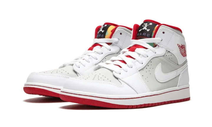 Modeled after the original "Hare" colorway of the Air Jordan VII, this mid-top edition of the Air Jordan 1 features the same color scheme but one-ups the original inspiration with official Bugs Bunny Jumpman branding on the tongue. You'll also spot perforations in the style of the Air Jordan VII on the quarter panels, and "HARE" on each heel to complete the fun colorway.