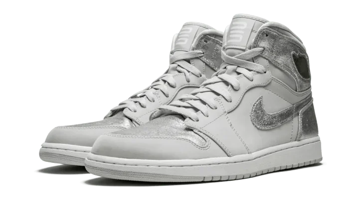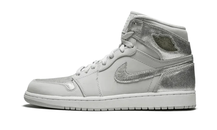 Released in 2009, this special edition Air Jordan 1 High celebrates the 25th anniversary of Jordan Brand. The Silver Anniversary sneaker features appropriate metallic silver accents on the clean light grey upper.
