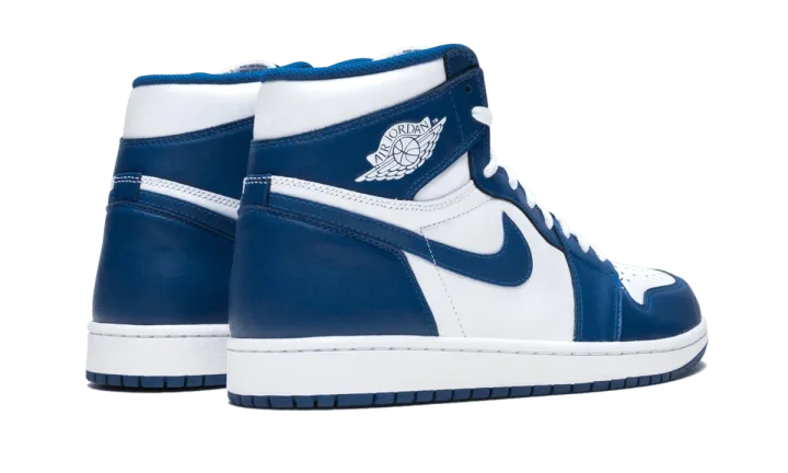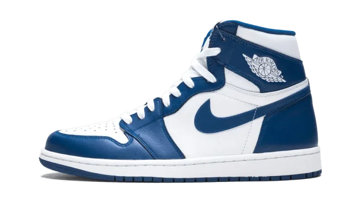 The Air Jordan 1 High OG "Storm Blue" is an original colorway of Michael Jordan's first signature shoe that was re-released in 2016. The "Storm Blue" is one of multiple designs of the retro basketball shoe to originally release back in 1985. A popular look that draws similarities to the Nike Dunk's "Kentucky" colorway, the "Storm Blue" was never worn by Jordan in the NBA, and didn't receive a retro release until 2016. The modern "Storm Blue" is nearly identical to the first version of the white-and-blue colorway, as it features white tumbled leather on the perforated toe, mid-panel, collar, and heel. Contrasting Storm Blue leather appears on the overlays and Swoosh branding. A white "Wings" logo is found on the collar and blue "Nike Air" and Swoosh detailing is printed on the white nylon tongue tag on the white nylon tongue. White laces, a white midsole, and a Storm Blue-colored rubber outsole all complete the look. The Air Jordan 1 High OG "Storm Blue" was referenced by Union for the fashion boutique's Air Jordan 1 "Storm Blue" collaboration in 2018.