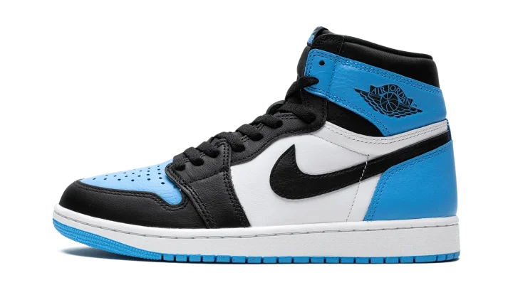 The Air Jordan 1 High OG "University Blue" is yet another popular colorway of the vintage basketball shoe inspired by Michael Jordan's alma mater, the University of North Carolina. The Jordan 1 debuted in a "UNC" colorway back in 1985 before it was again released in a plethora of colors inspired by the UNC Tar Heels college basketball team in more recent years. The Jordan 1 features a University Blue perforated leather toe with black leather overlays. A black leather Swoosh appears on the sides. Additional University Blue leather is found on the collar and heel. A classic "Wings" logo is located on the collar and "Nike Air" branding is found on the tongue tag. Release date: July 8, 2023