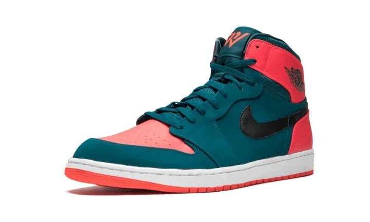 In 2015 Jordan Brand created special edition Air Jordan 1 highs for a number of their top NBA players, including Russell Westbrook who received this eye-catching edition in Infrared and dark teal. His "RW" is found on each tongue to complete the honorary colorway.