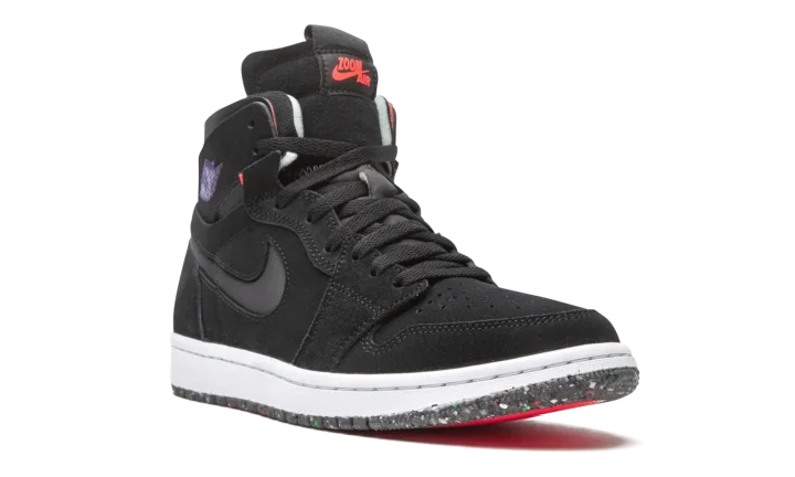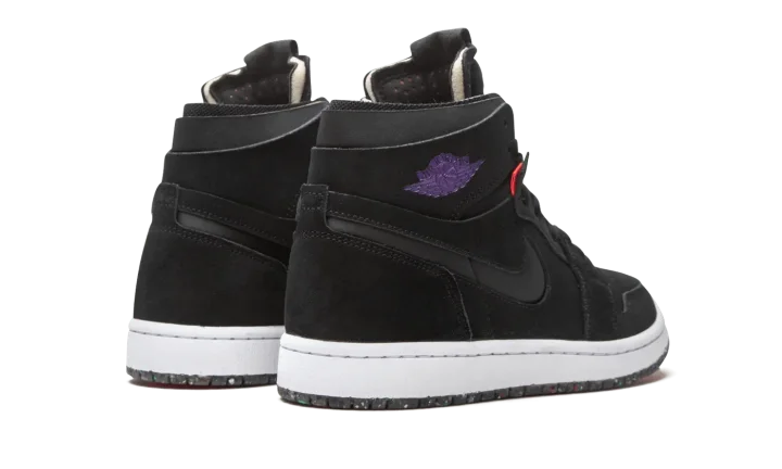 The Air Jordan 1 High Zoom CMFT "Court Purple" is a modern interpretation of Michael Jordan's first signature shoe with even more padding around the collar and Zoom Air cushioning in the sole. Appearing in "Court Purple," the Jordan 1 Zoom Comfort is an modified construction for the retro basketball shoe that expands upon the model's standard performance components. Moreover, the silhouette combines non-traditional Air Jordan 1 materials and colors for a refreshing new vibe. The entire upper is constructed from black suede, including the perforated toe, mid-panel, collar, and heel. Jordan Brand adds a black neoprene Swoosh to both sides and a Court Purple "Wings" logo to the collar. The Air Jordan 1 Zoom Comfort features a higher tongue than the standard Jordan 1 and replaces the original "Nike Air" branding with "Zoom Air" insignia on the tongue tag. The Zoom Comfort also displays exposed foam padding on the collar à la the Off-White x Air Jordan 1 from "The 10" collection. Jordan Brand adds Zoom Air cushioning into the midsole for more comfort, replacing the standard Air unit found in the original Air Jordan 1 High OG model.
