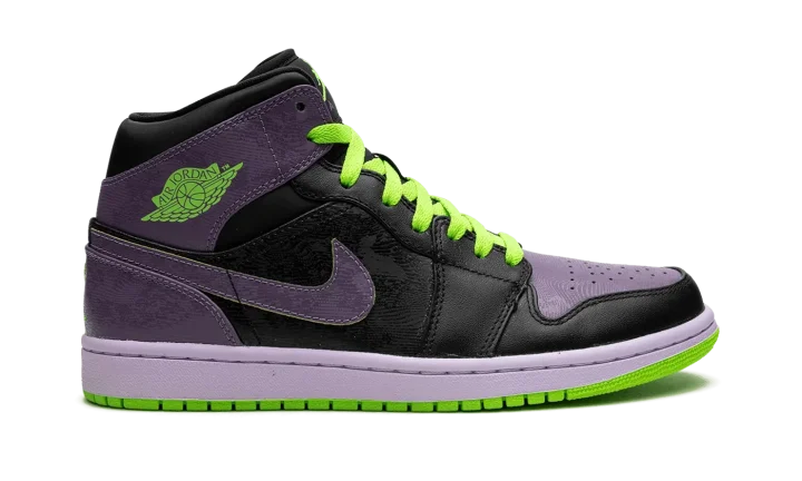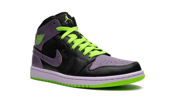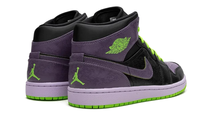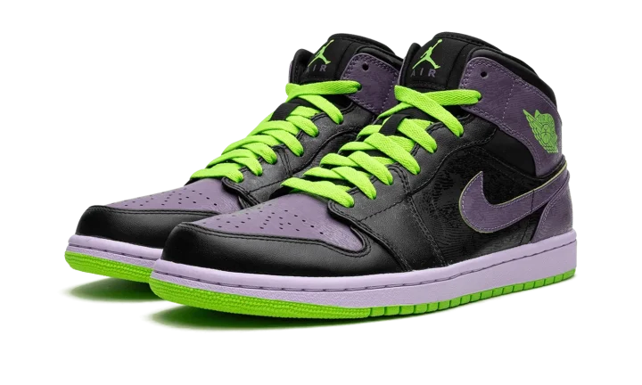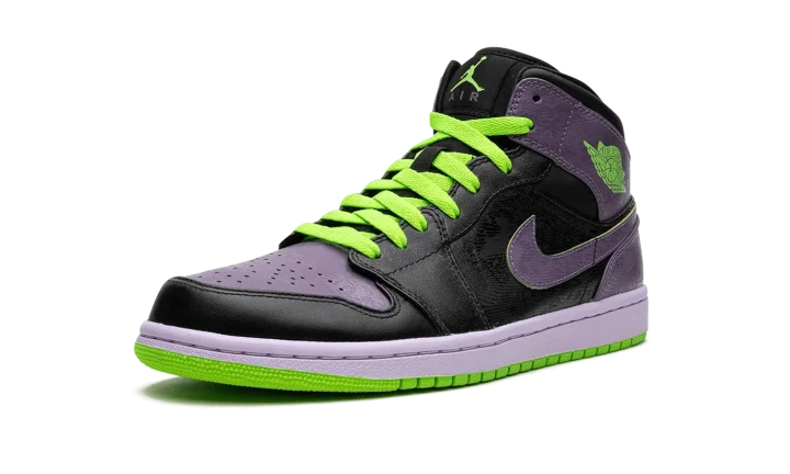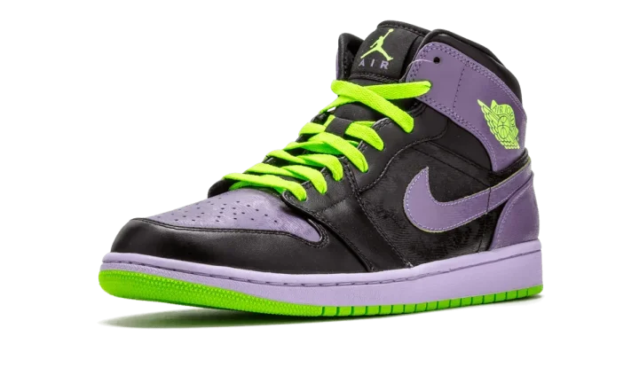 Due to its similarities in color to the famous foe of Batman, this Air Jordan 1 High in black, green, and purple quickly picked up the "Joker" nickname.