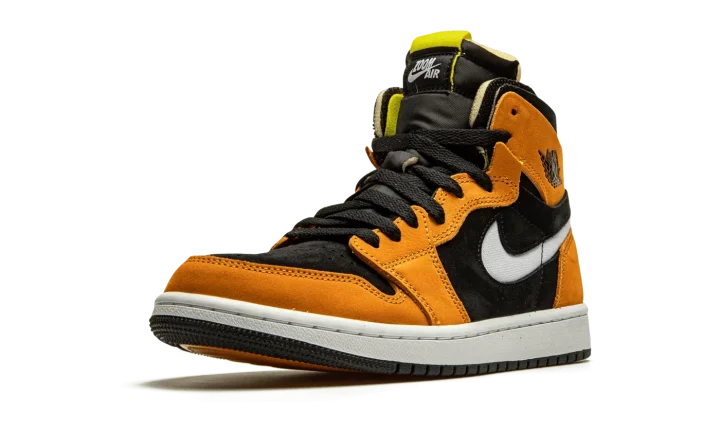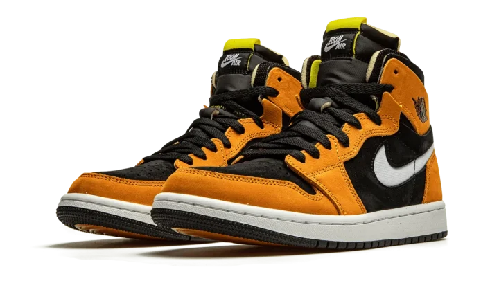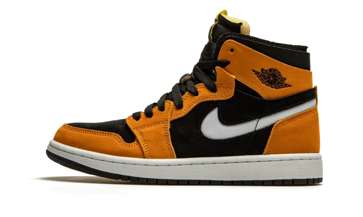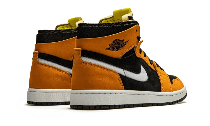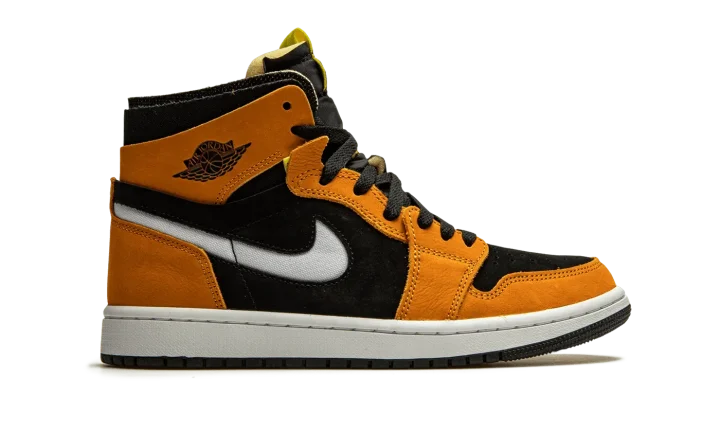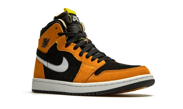 The Air Jordan 1 High Zoom CMFT "Black/Monarch" is a contemporary spin on Michael Jordan's first signature shoe. Jordan Brand introduced the Jordan 1 High Zoom CMFT in 2020 as a progression from the iconic original silhouette. The deconstructed style is influenced by the popular Off-White x Air Jordan 1 from 2017. Moreover, the Zoom CMFT features even more padding around the collar. As for this colorway, burnt orange suede overlays appear on the forefoot, eyelets, collar, and heel. A white Swoosh can be found on both sides and a black "Wings" logo resides on the collar. Black suede forms the base of the shoe, appearing on the perforated toe and on the mid-panel and collar. The midsole is supplied with Zoom Air cushioning, a replacement for the standard Air unit found in the original Jordan 1 High OG model. Release date: March 2, 2021.